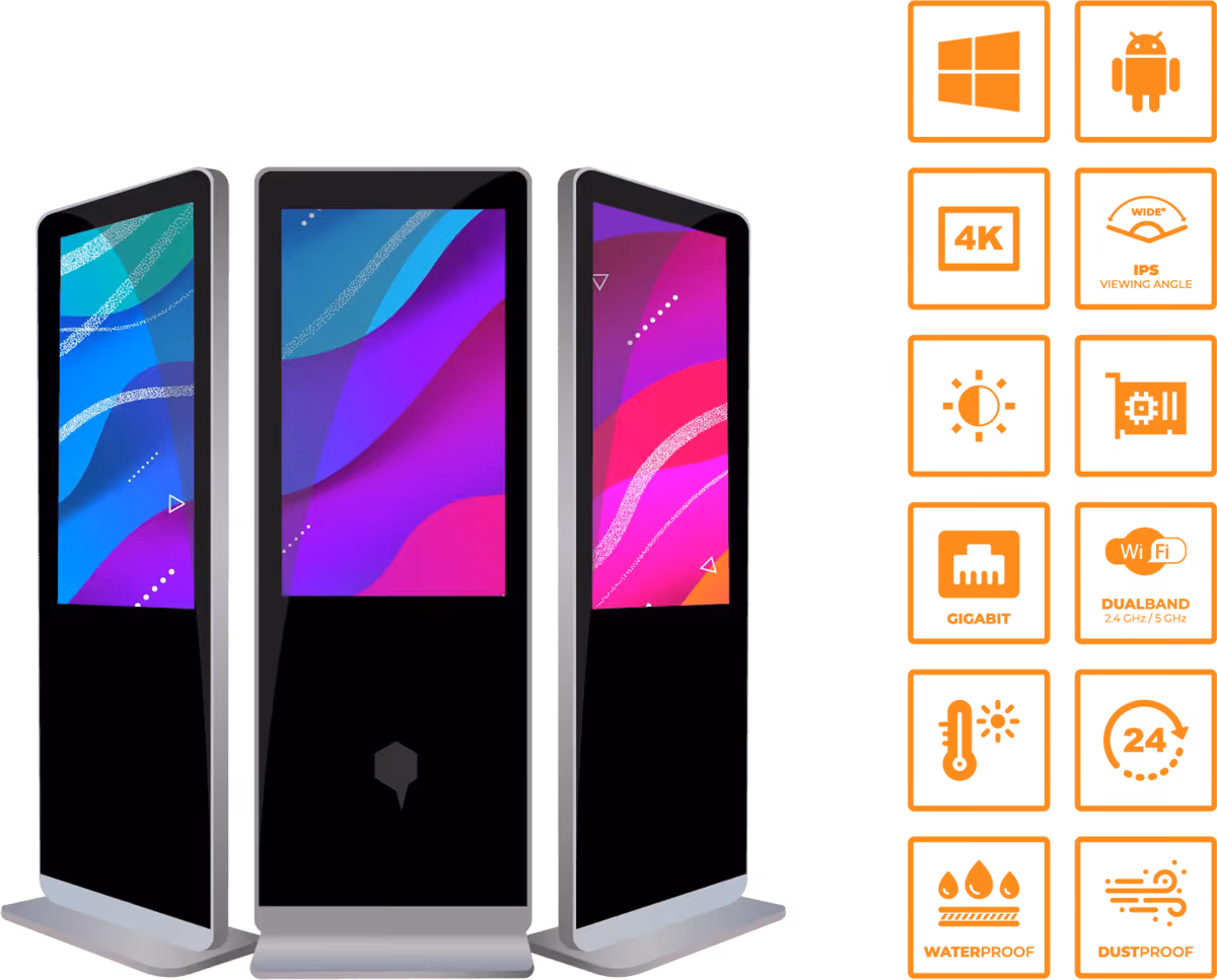 Modular and dynamic Kiosks to suit any customer journey needs. Kiosk can be used as wayfinding, interactive or informational displays based on customer preferences.